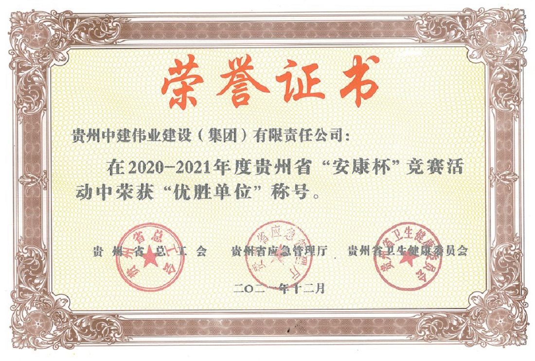 近期,貴州省總工會、貴州省應急管理廳、貴州省衛(wèi)生健康委員會印發(fā)《關于表彰2020-2021年度貴州省“安康杯”競賽優(yōu)勝集體、優(yōu)勝班組和優(yōu)秀個人的決定》,集團公司被授予“優(yōu)勝單位”榮譽稱號。